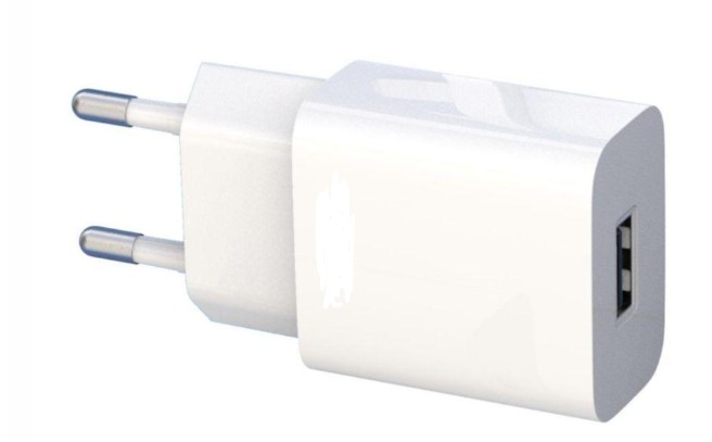 Carregador de parede USB branco com pontas metálicas redondas