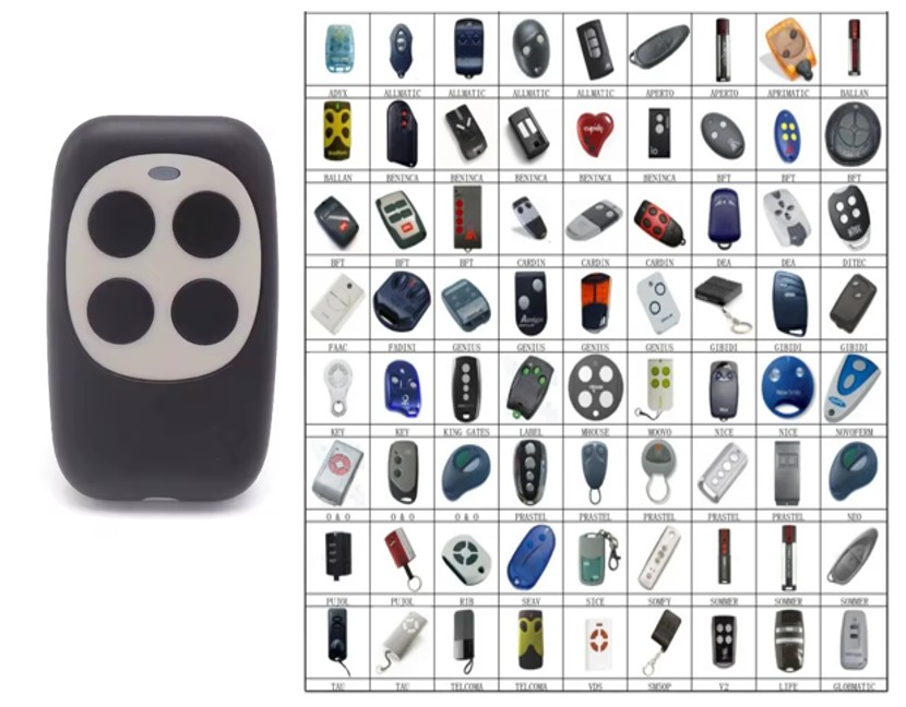 Comando de portão de garagem universal, de 4 botões, capaz de copiar (clonar) códigos de outros comandos.