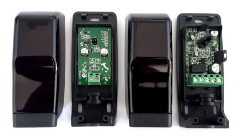 Fotocélulas RF40 externas por raios infravermelhos modulados com alcance até 40m.