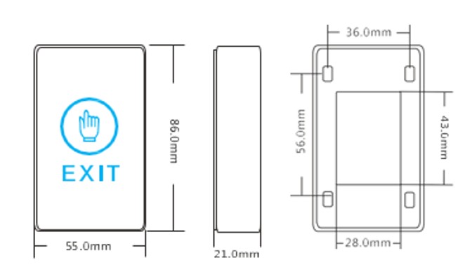 Interruptor de acesso, com toque, NO/NC/COM, 12V/24V DC, LED de status, metálico, 5 fios.