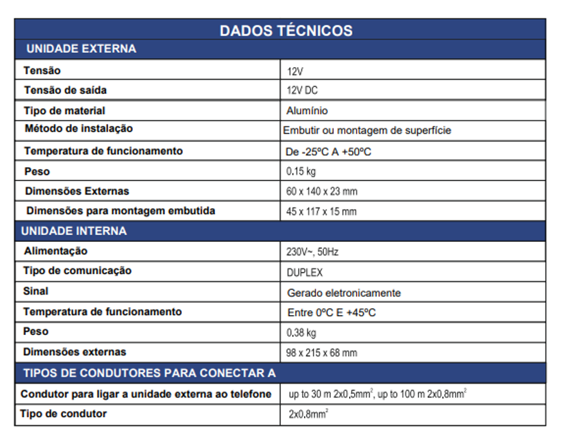 - Sistema de conexão: 2 fios