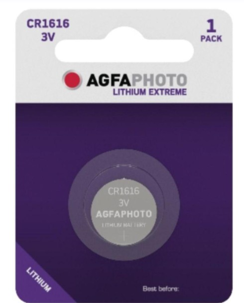 Pilha de botão AGFAPHOTO CR1616 3V em embalagem roxa