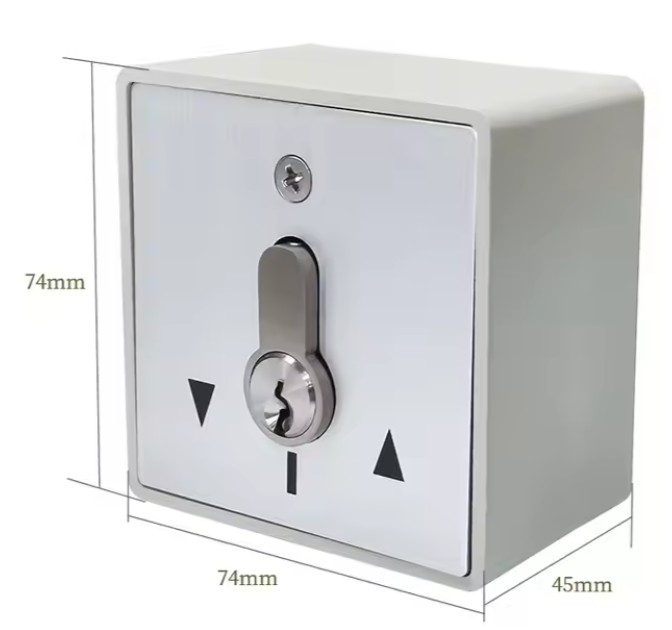 Caixa fechadura metálica branca com fechadura de cilindro e alavanca