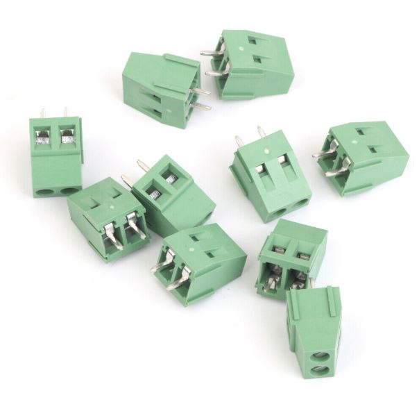 - Terminal de parafusos de duas vias para circuitos, 2 pinos (5mm).